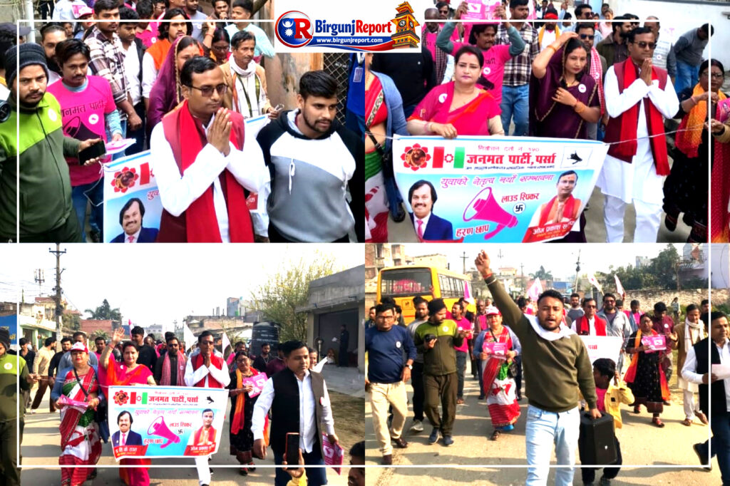 वीरगञ्ज, ८ फागुन । पर्सा निर्वाचन क्षेत्र नम्बर–१ का लागि जनमत पार्टी का उम्मेदवार ओमप्रकाश सर्राफ यतिबेला घरदैलो अभियानलाई तीव्र बनाउँदै मतदातासँग प्रत्यक्ष भेटघाटमा सक्रिय देखिएका छन्। विशेषगरी वीरगञ्ज महानगरपालिका वडा नम्बर–१६ नगवा क्षेत्रमा उनी समर्थक र स्थानीयवासीसँग छलफल गर्दै चुनावी समर्थन जुटाइरहेका छन्।