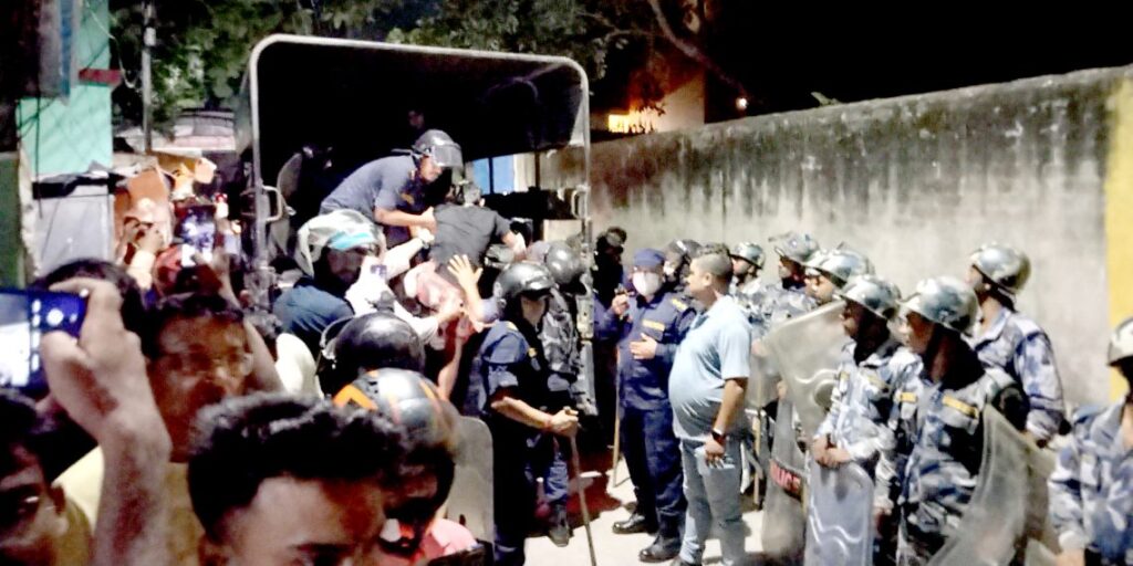 उनीहरु प्रदर्शन गर्ने क्रममा पर्खाल माथिको फलामको रेलिङ्ग नाघी सडकमा आई सञ्चारकर्मीहरुसँग कुराकानी गर्न प्रयास पनि गरेको थियो ।
