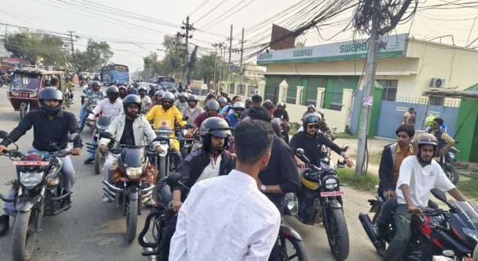 बीरगन्ज,१७ चैत । बीरगन्जमा समाजसेवी तेज शमशेर जबराको नेतृत्वमा बालेन शाह नेतृत्वको सरकारप्रति समर्थन जनाउँदै भव्य मोटरसाइकल र्याली निकालिएको छ। विकास, सुशासन र पारदर्शिताको पक्षमा आवाज उठाउँदै सयौँ युवाहरूको सहभागितामा र्याली सम्पन्न भएको हो।